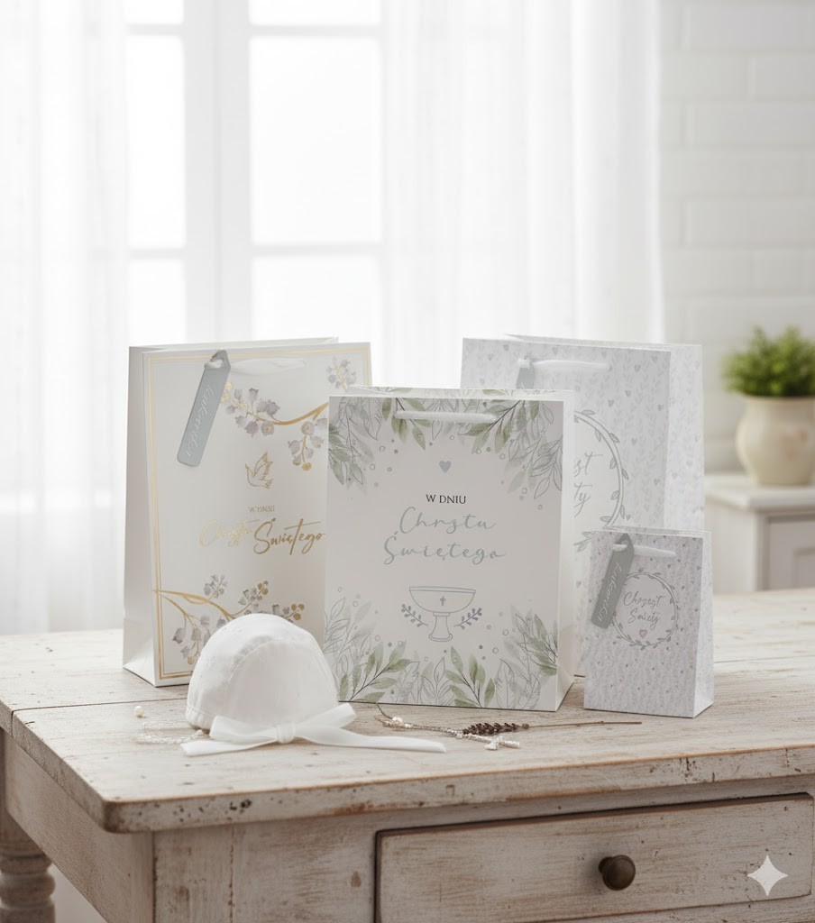 Kolor biały w liturgii chrześcijańskiej jest symbolem światła, nowego życia i oczyszczenia — doskonale wpisuje się w wymowę sakramentu chrztu. Wybierając tę torebkę, nie tylko podarujesz prezent, ale również wyrazisz duchową troskę i piękno chwili.