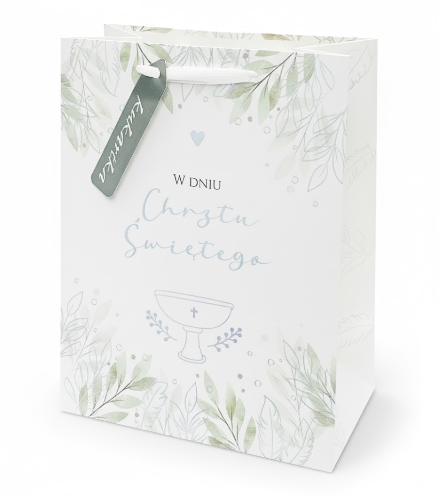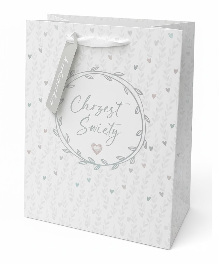 Idealna torebka, która podkreśli wyjątkowość chwili sakramentu chrztu — wykończona w delikatnym odcieniu bieli, ozdobiona subtelnym motywem „Chrzest Święty”, wykonana z trwałego papieru o wzmocnionym dnie. Format A5 (22 × 17 cm) sprawia, że zmieszczą się w niej zarówno książeczki pamiątkowe, biżuteria, jak i inne upominki.