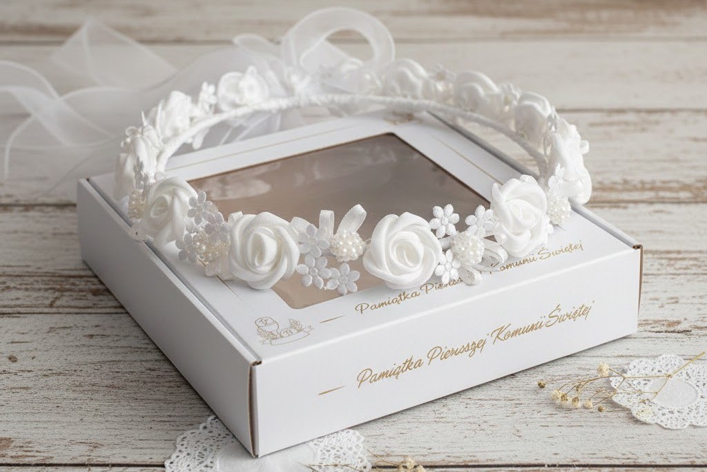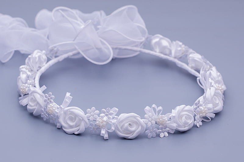 Wianek komunijny – klasyczna biel z delikatnym kwiatowym wykończeniem