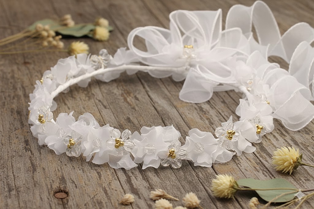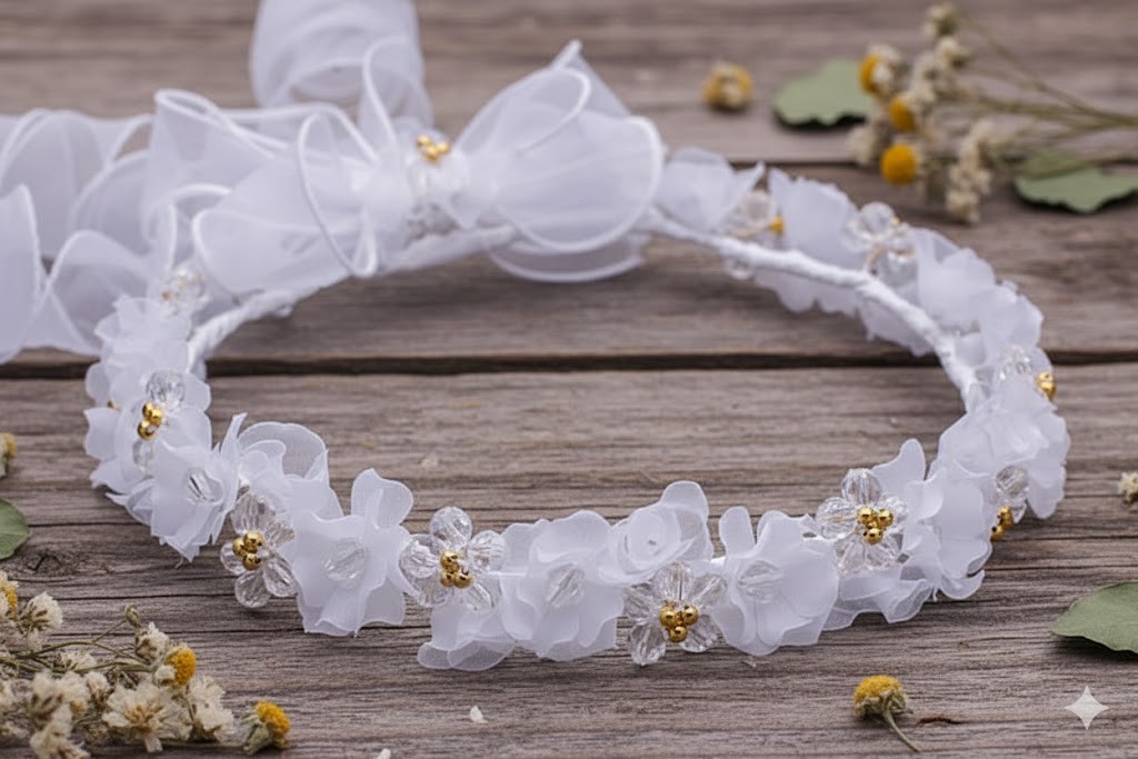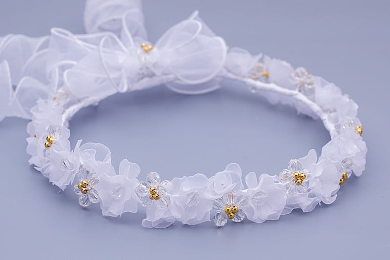Wianek komunijny – czysta biel z subtelnym złotym akcentem