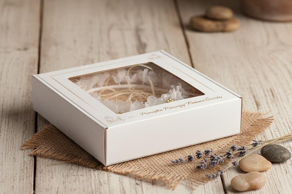 W e-Dewocjonalia dostępne są również eleganckie torebki komunijne, rękawiczki oraz delikatna biżuteria, które idealnie uzupełniają subtelny charakter tego wianka.