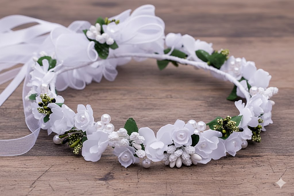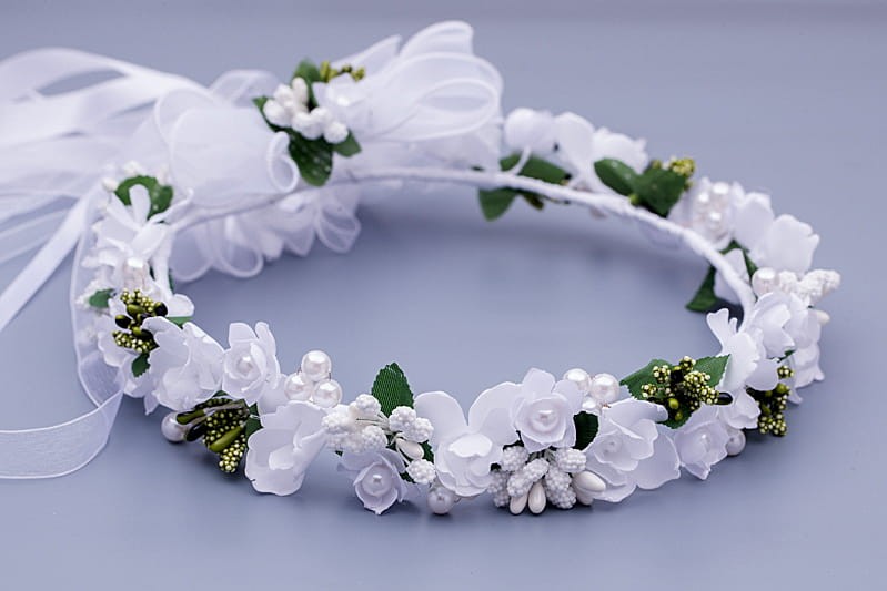 Wianek komunijny – klasyczna biel z perłową subtelnością