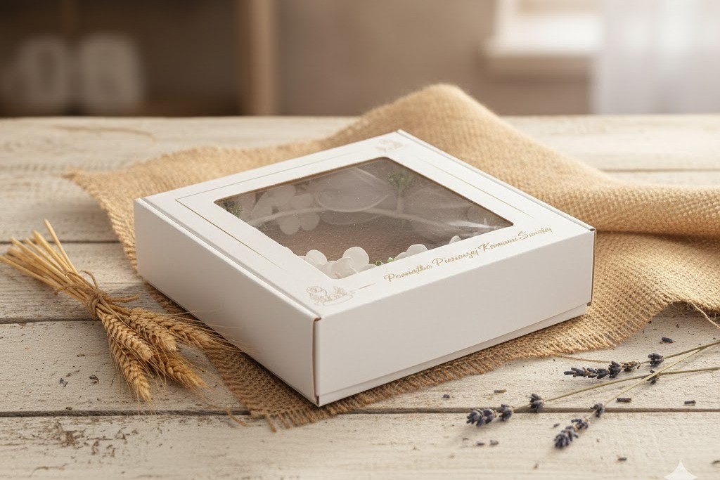 Model wykonany został z wysokiej jakości, realistycznych materiałów i osadzony na elastycznym stelażu ukrytym w konstrukcji. Dzięki temu wianek doskonale dopasowuje się do głowy dziecka, nie powoduje ucisku i pozostaje stabilny przez cały dzień uroczystości. Całość dopełnia lekka, półtransparentna kokarda z organzy z delikatnymi wstążkami, która pięknie układa się na włosach i na zdjęciach komunijnych.
