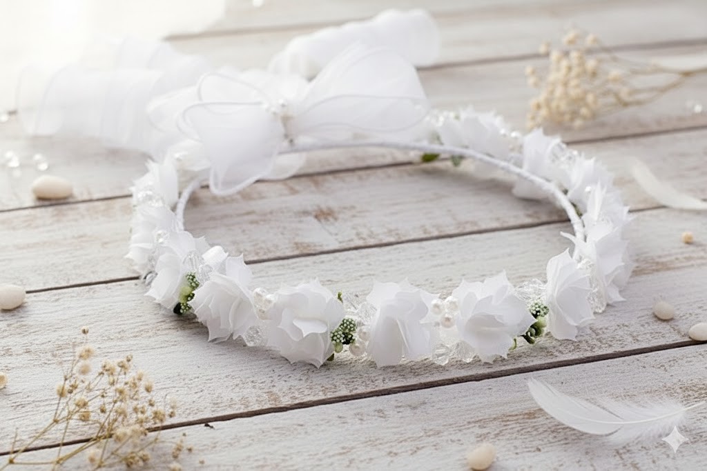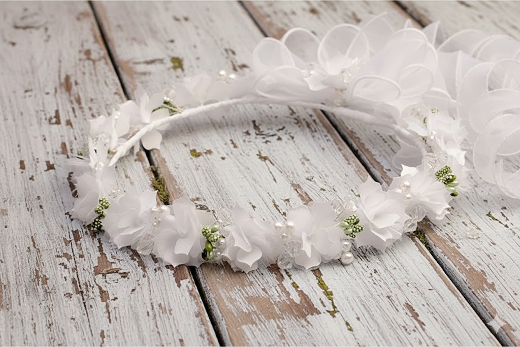 Wianek komunijny – eteryczna biel z naturalną subtelnością