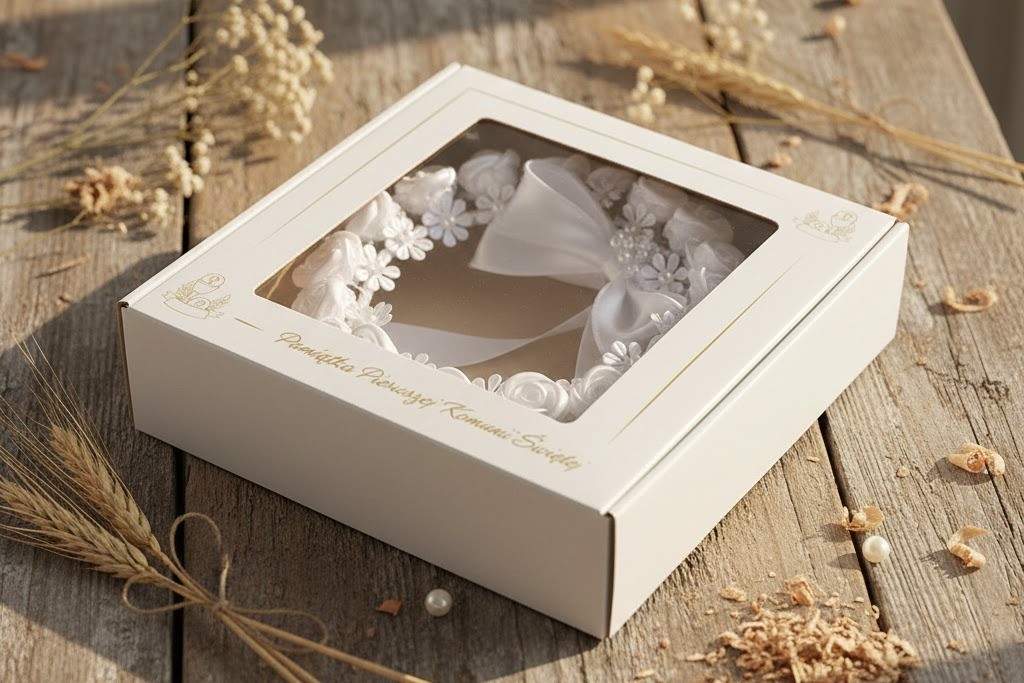 pamiątka komunijna przechowywana po uroczystości.