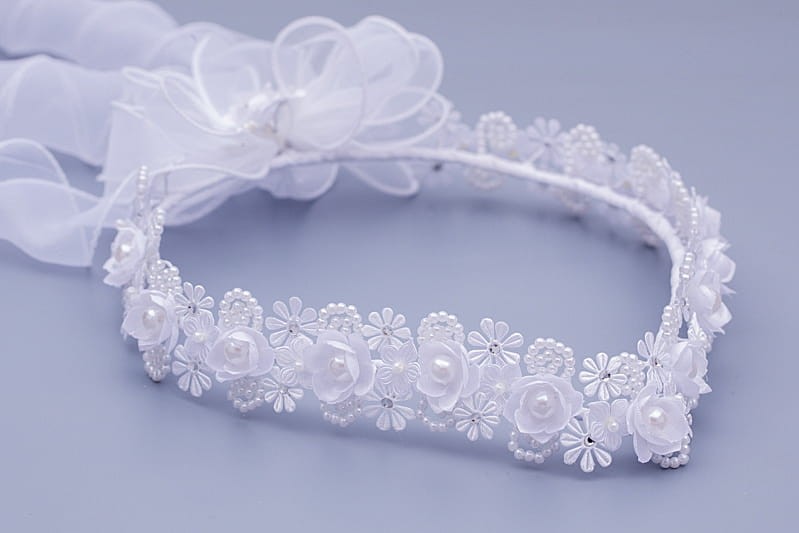 Wianek komunijny – klasyczna biel z perłowym zdobieniem