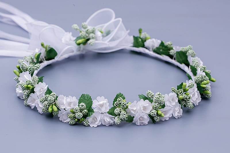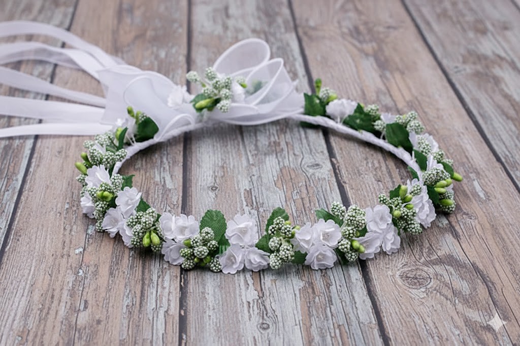 Wianek komunijny – świeża biel i naturalna harmonia zieleni