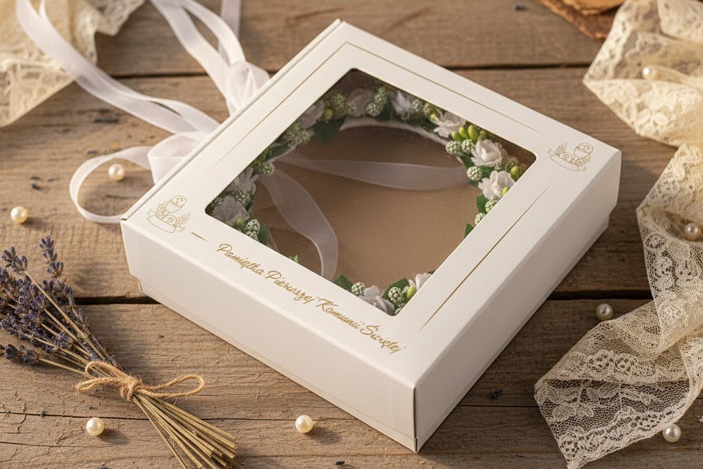 W e-Dewocjonalia dostępne są również eleganckie torebki komunijne, rękawiczki oraz delikatna biżuteria, które doskonale komponują się z naturalnym charakterem tego wianka.