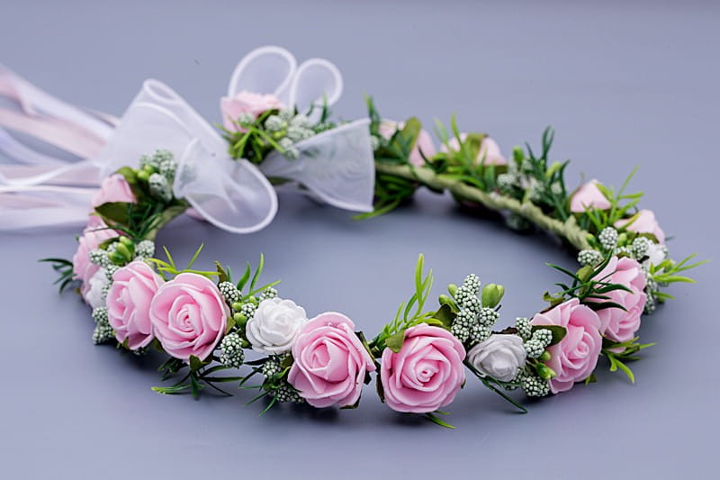 Wianek komunijny – pudrowe róże i naturalna zieleń
