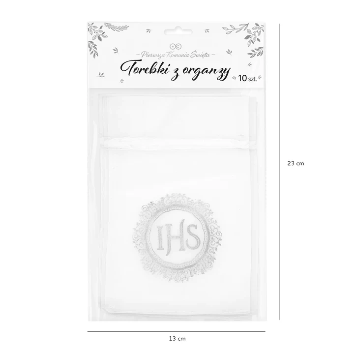 Woreczki SILVER na podziękowania dla gości IHS Komunia Święta - 10 szt