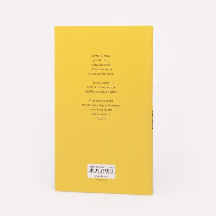 Książka z bestsellerowej serii YOUCAT. Kurs wiary wyjaśnia istotę wiary katolickiej i zachęca do refleksji i dyskusji. Jest uzupełnieniem katechizmu młodych YOUCAT, ale można go również czytać samodzielnie. Bernhard Meuser zebrał najbardziej istotne pytania dotyczące wiary, jak: „Co wiemy o Bogu?”, „Po co potrzebny jest Kościół?”, „Jak powołuje Bóg?”, „Jak powiedzieć Bogu «Tak»?” i razem z zespołem specjalistów przygotował odpowiedzi na nie.
