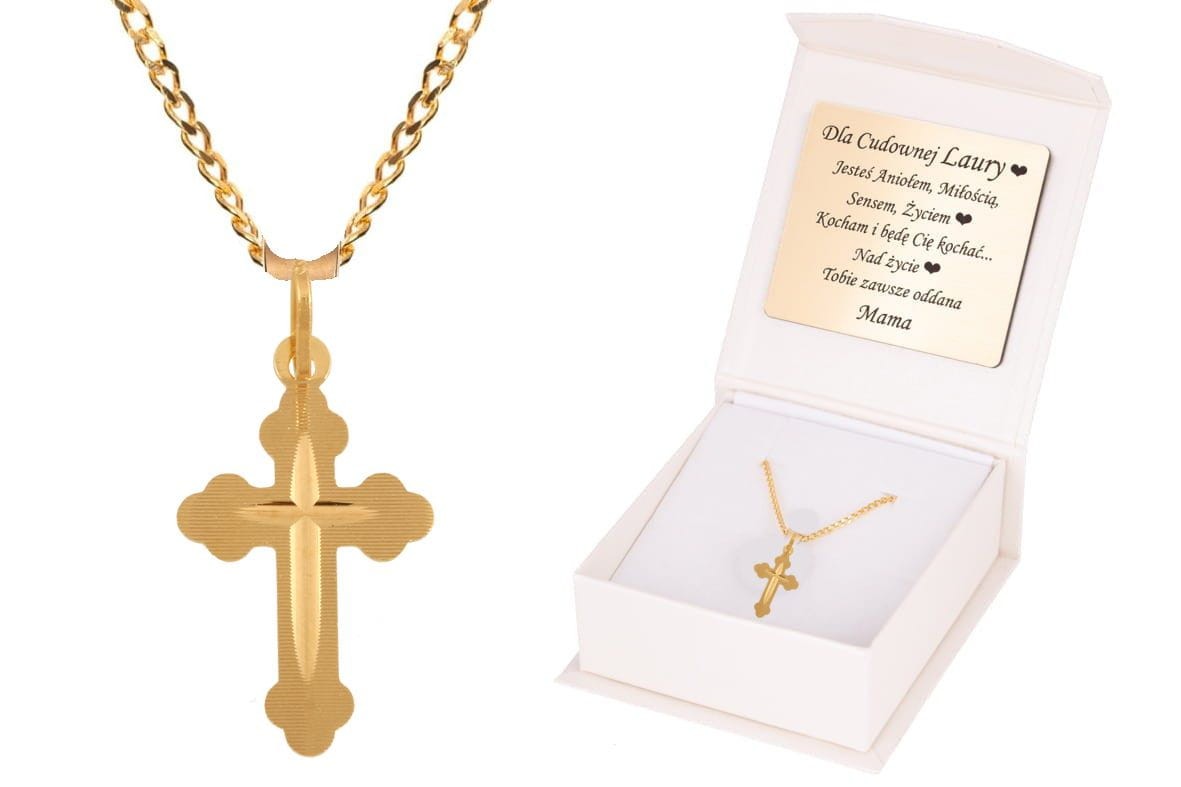 Medalik z wizerunkiem Krzyża na łańcuszku (pr.585) w pudełeczku z grawerem
