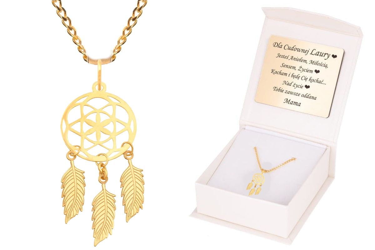ZŁOTY komplet ŁAPACZ SNÓW z łańcuszkiem pr. 585 DEDYKACJA - Pamiątka Prezent