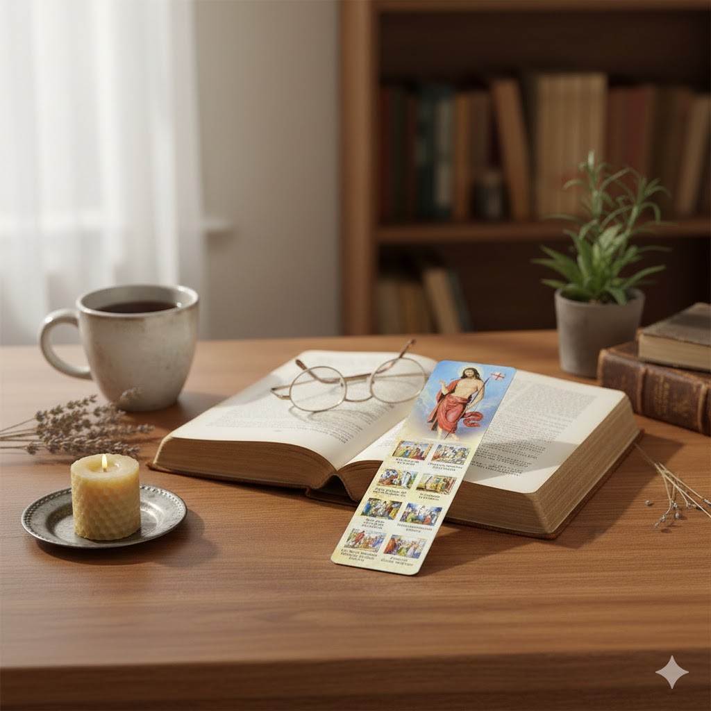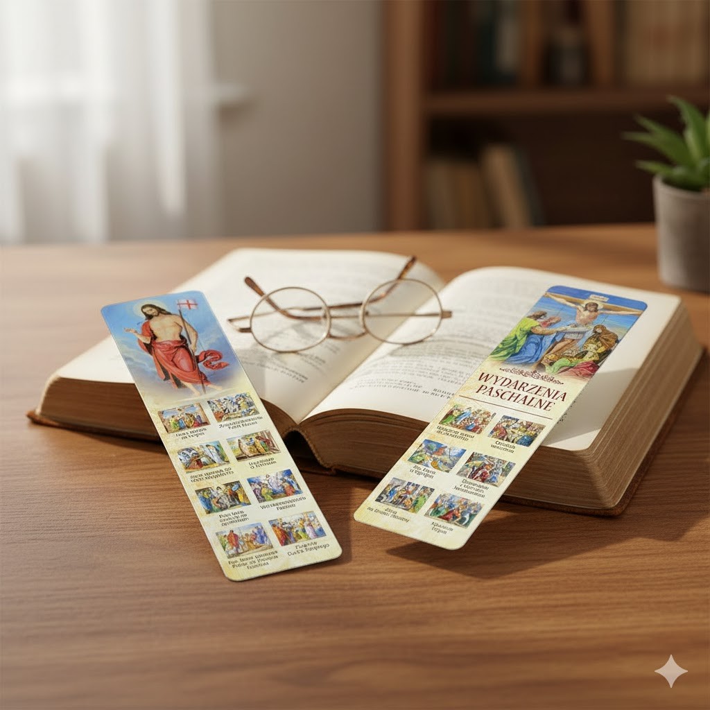Motyw Wydarzeń Paschalnych sprawia, że zakładka jest nie tylko praktyczna, ale również inspirująca — przypomina o najważniejszych wydarzeniach zbawczych i sprzyja osobistej refleksji.