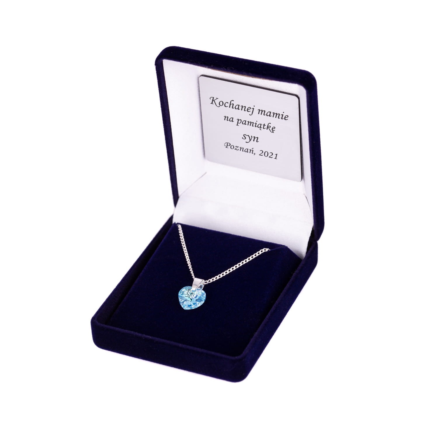Zawieszka SWAROVSKI "Royal Blue" na łańcuszku DEDYKACJA - Pamiątka Prezent