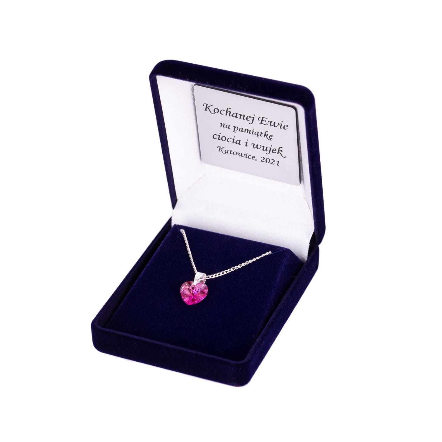 Zawieszka SWAROVSKI "Royal Pink" na łańcuszku DEDYKACJA - Pamiątka Prezent