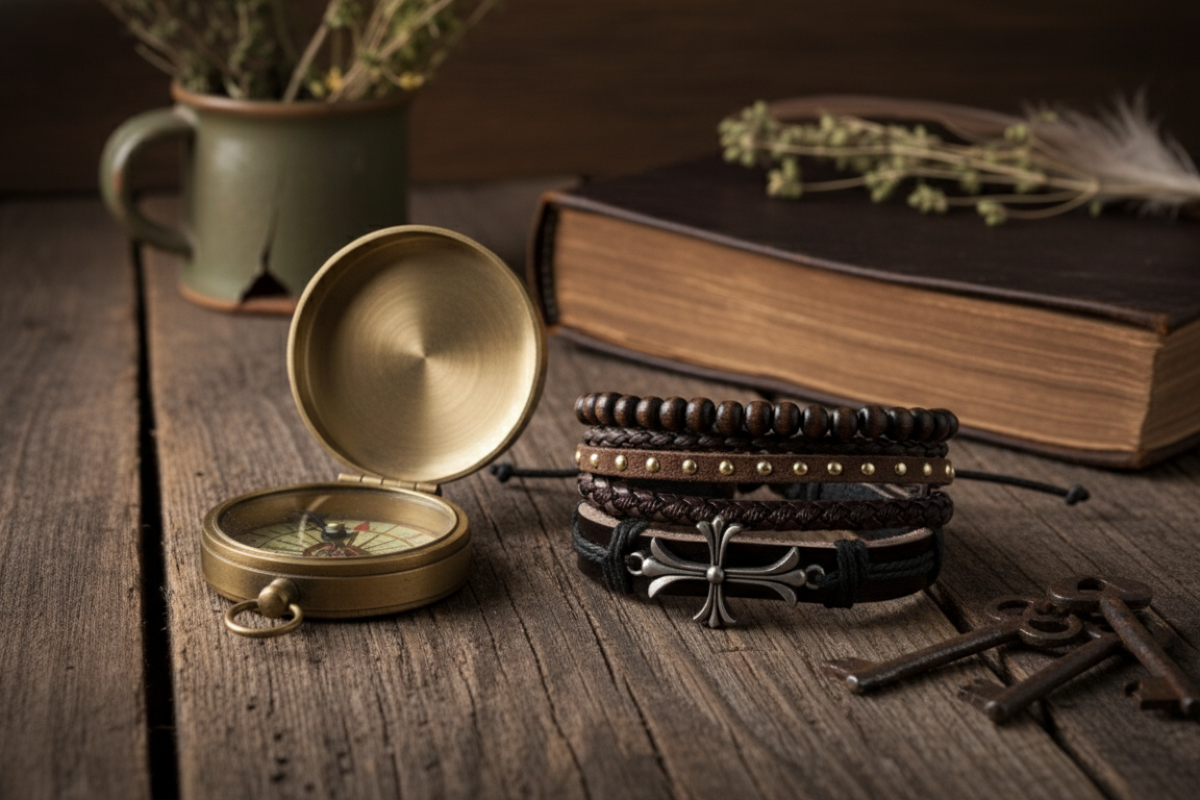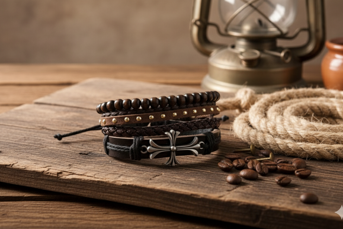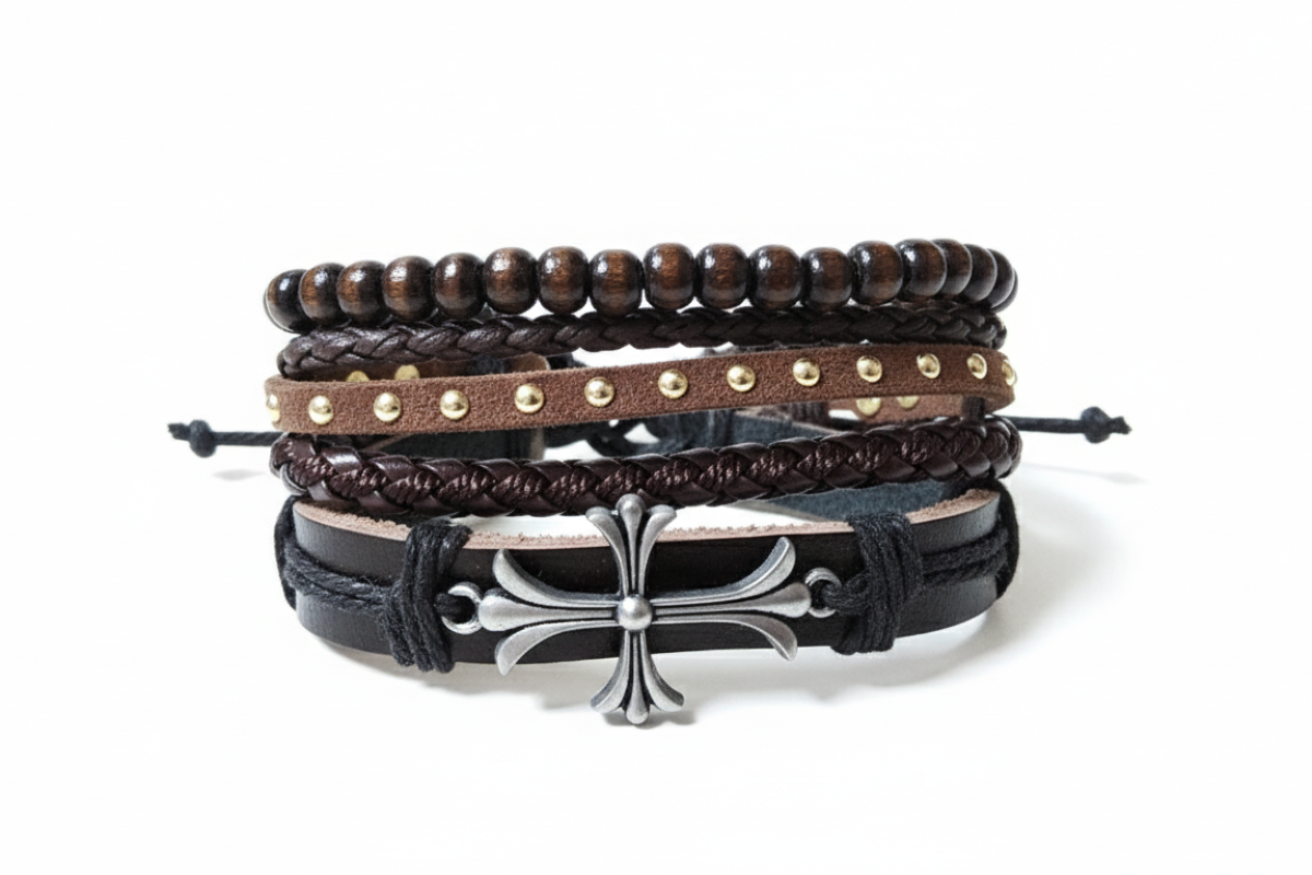 Zestaw Męskich Bransoletek z Krzyżem – Styl Rustykalny