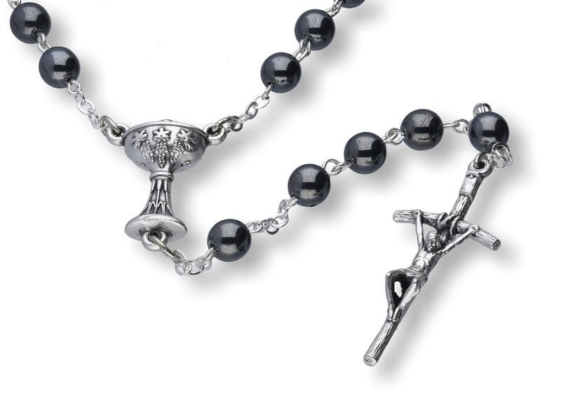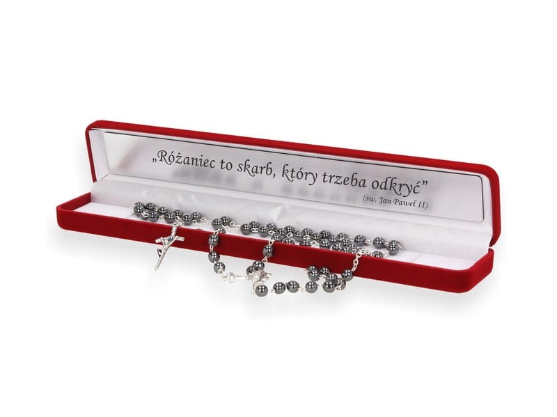 Zestaw PREMIUM. Różaniec Hematyt IHS 6mm + ozdobne pudełko z Twoim grawerem