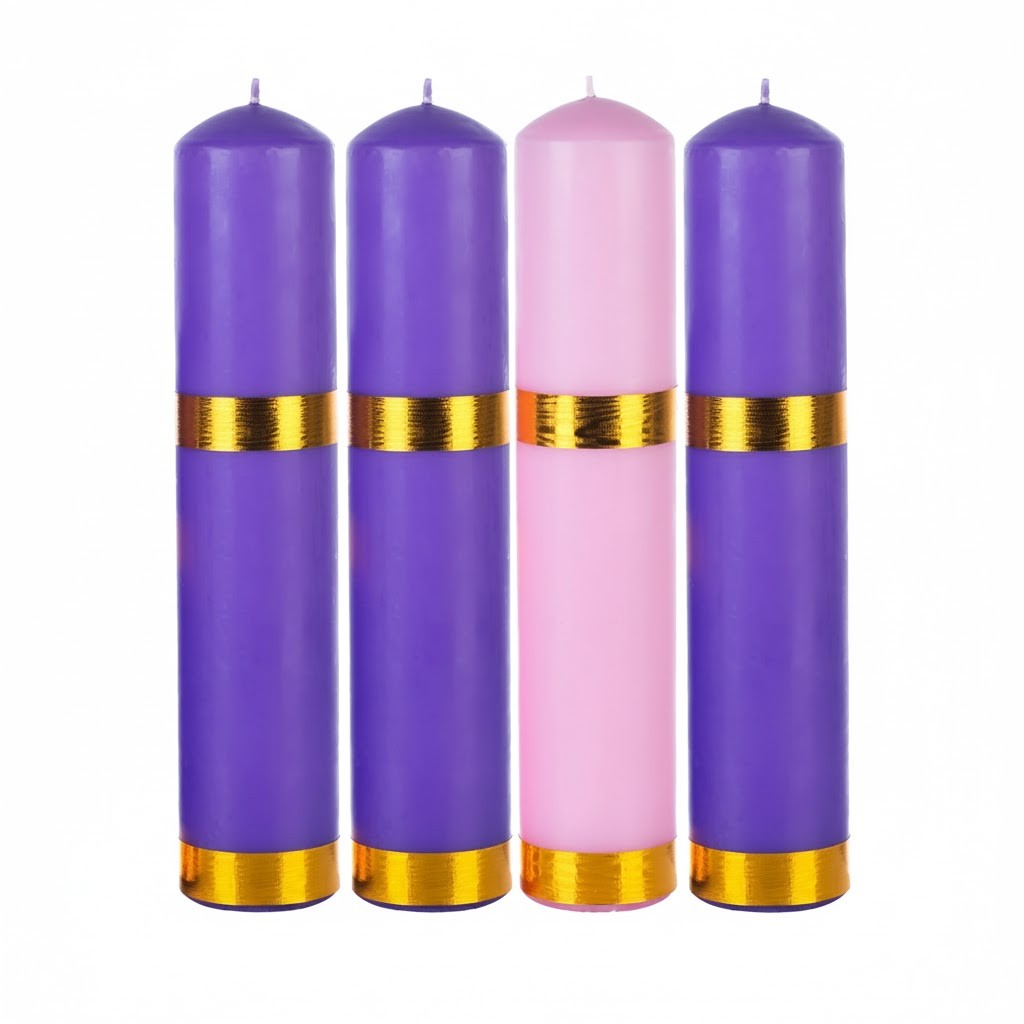 Cztery świece zgodne z tradycją liturgiczną Adwentu.