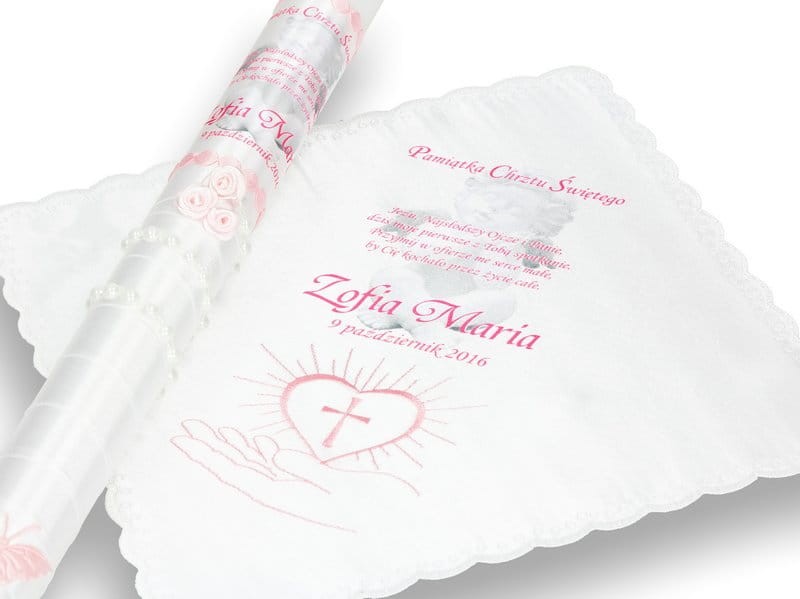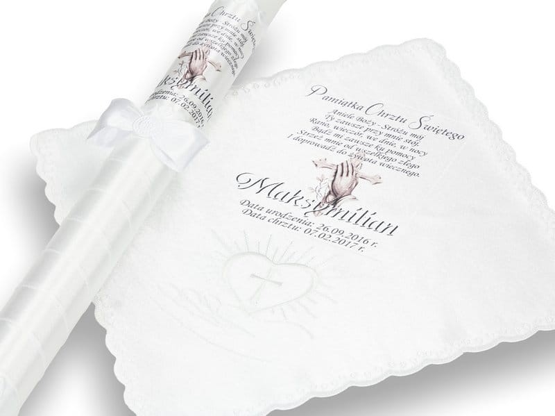 Zestaw na Chrzest z modlitwą i imieniem - chusteczka