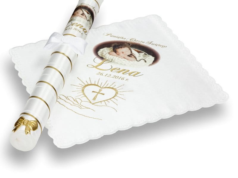 Nowość na rynku, niezapomniana pamiątka z okazji Chrztu Świętego. Świeca ręcznie dekorowana ze zdjęciem dziecka według projektu do wyboru oraz szatka atłasowa. Możliwość dodania wiersza i dedykacji na każdej szatce