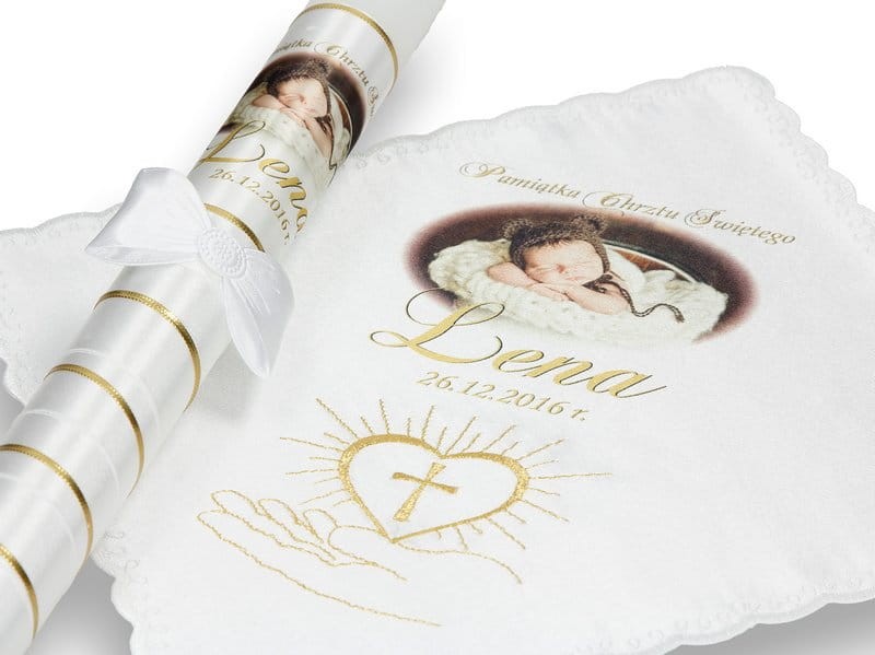 Zestaw na Chrzest ze zdjęciem dziecka - Serce