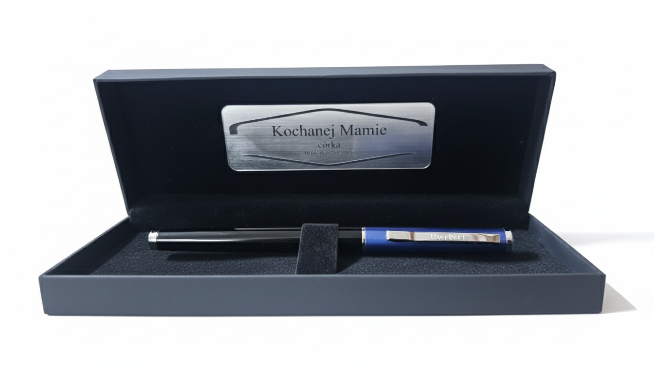 Stylowy zestaw prezentowy marki Pierre Cardin – pióro kulkowe umieszczone w czarnym pudełku z możliwością wykonania graweru. Idealny wybór na prezent dla niej, dla niego lub dla pary – na urodziny, rocznicę, awans czy specjalną okazję. Pióro łączy funkcjonalność i elegancję, a markowe wykonanie potwierdza jego prestiż. Zestaw gotowy do wręczenia, podkreślający klasę i wyrafinowany gust.