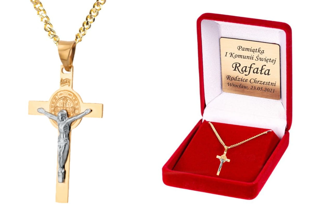 - wizerunek: Krzyżyk z Jezusem Medalik św. Benedykta (Święty Benedykt z Nursji, założyciel zakonu benedyktynów. Benedykt jest często ukazywany z Jezusem, aby podkreślić jego głęboką religijność i oddanie Chrystusowi)