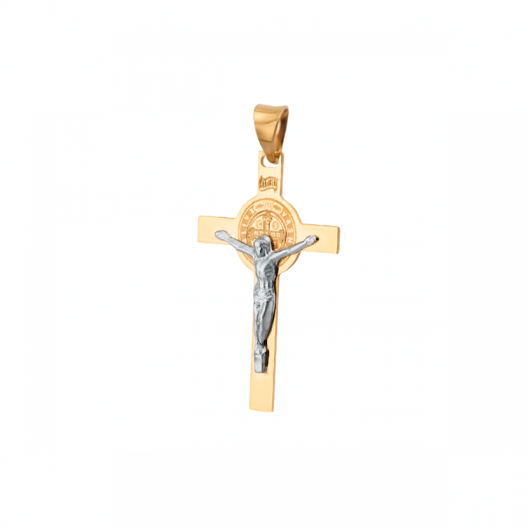 Złoty krzyżyk dwukolorowy z Jezusem medalikiem św. Benedykta łańcuszek pr. 585 DEDYKACJA