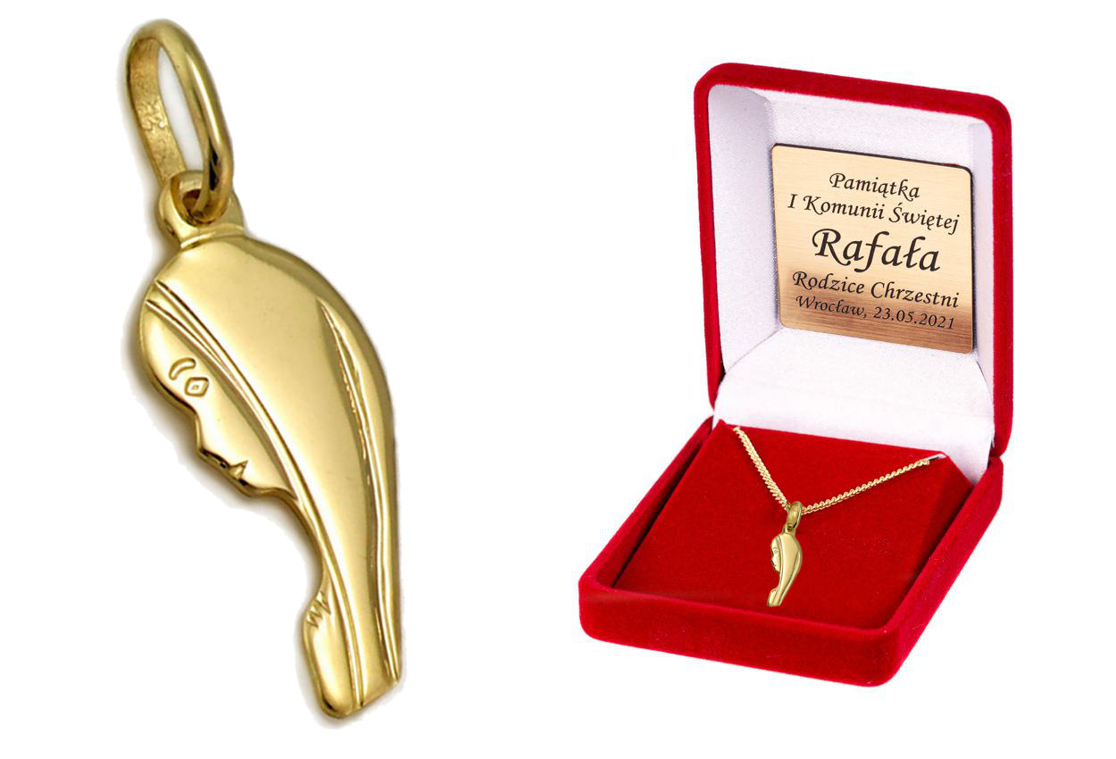 Złoty medalik MATKA BOSKA łańcuszek pr. 585 DEDYKACJA - Pamiątka Prezent Grawer