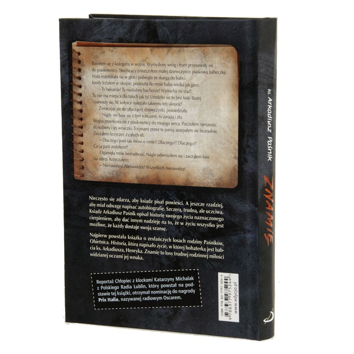 Niniejsza publikacja to kontynuacja książki “Obietnica. Historia, którą napisało życie”, opowiadającej o zesłańczych losach rodziny Paśników, w której bohaterką jest babcia ks. Arkadiusza, Henryka. “Znamię” to jej kontynuacja, ukazująca powojenne losy trudnej rodzinnej miłości widzianej oczami jej wnuka.