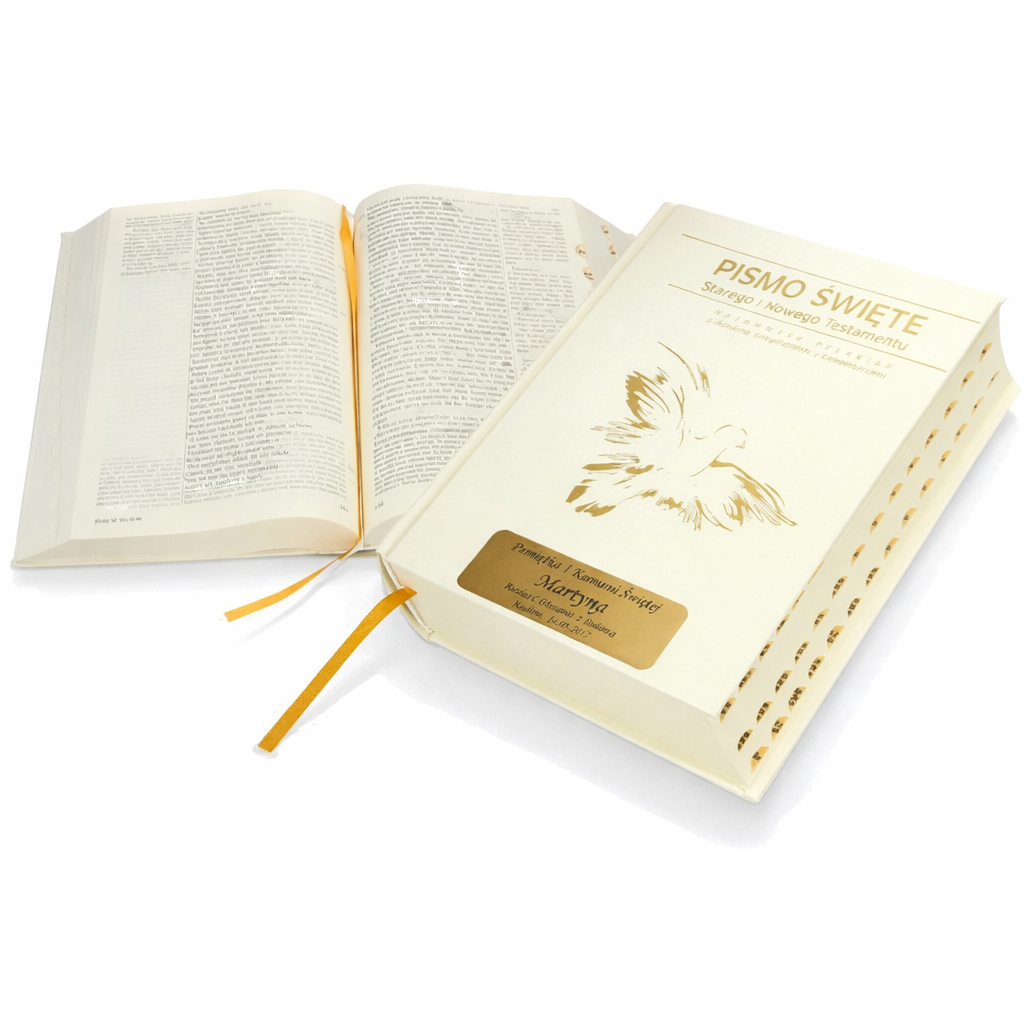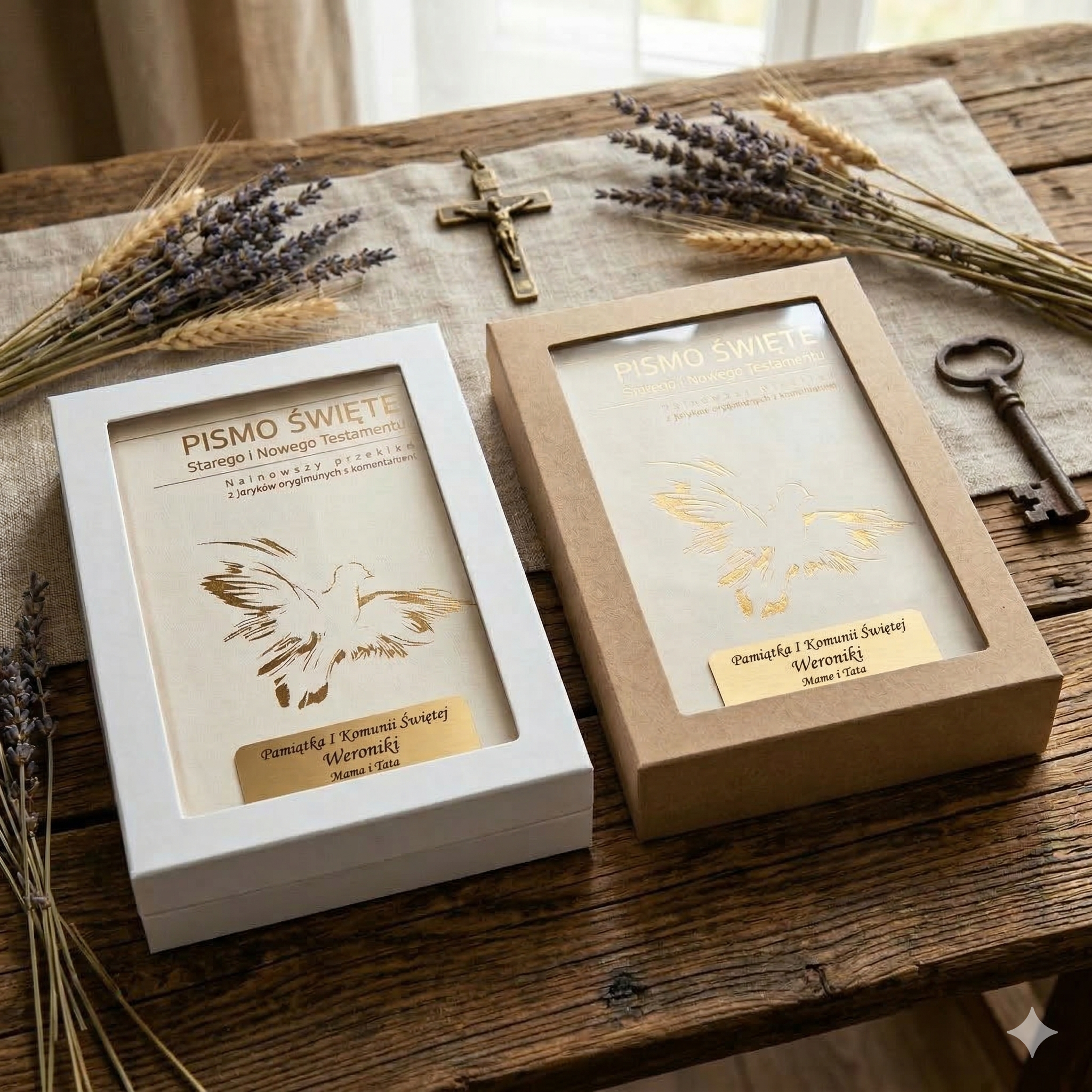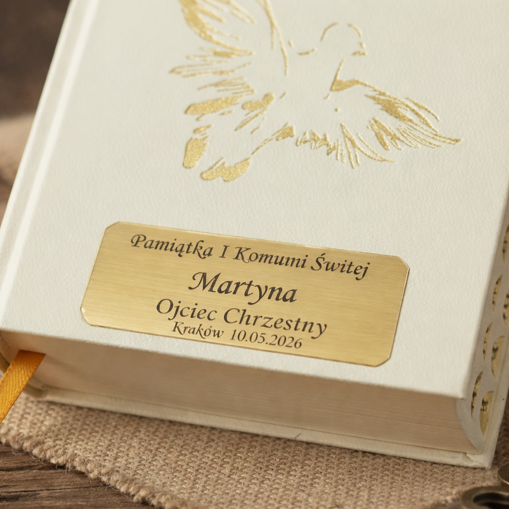 Możliwość personalizacji sprawia, że każdy egzemplarz staje się wyjątkowy – imienna dedykacja wykonana trwałą techniką zdobienia nadaje mu osobisty i duchowy wymiar.