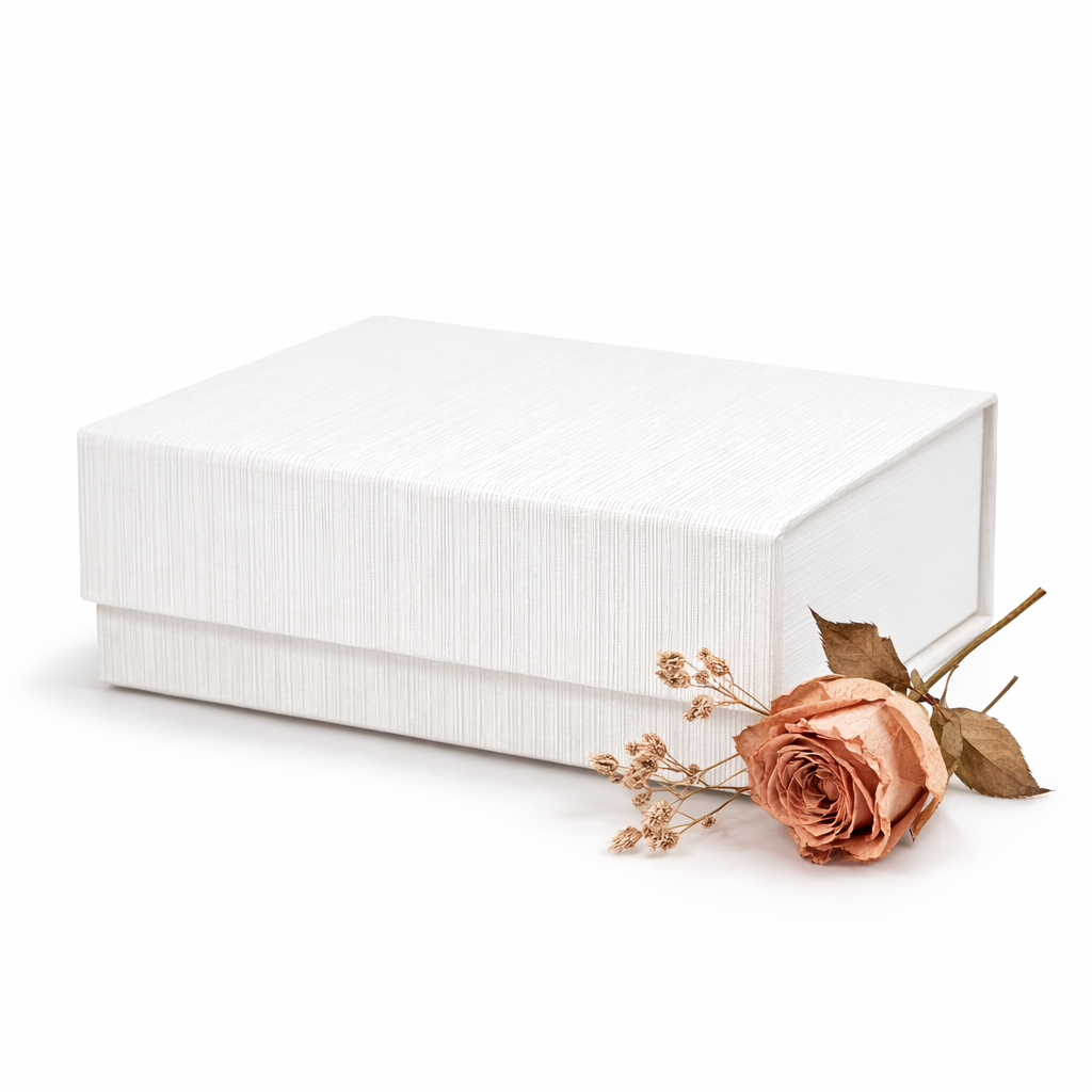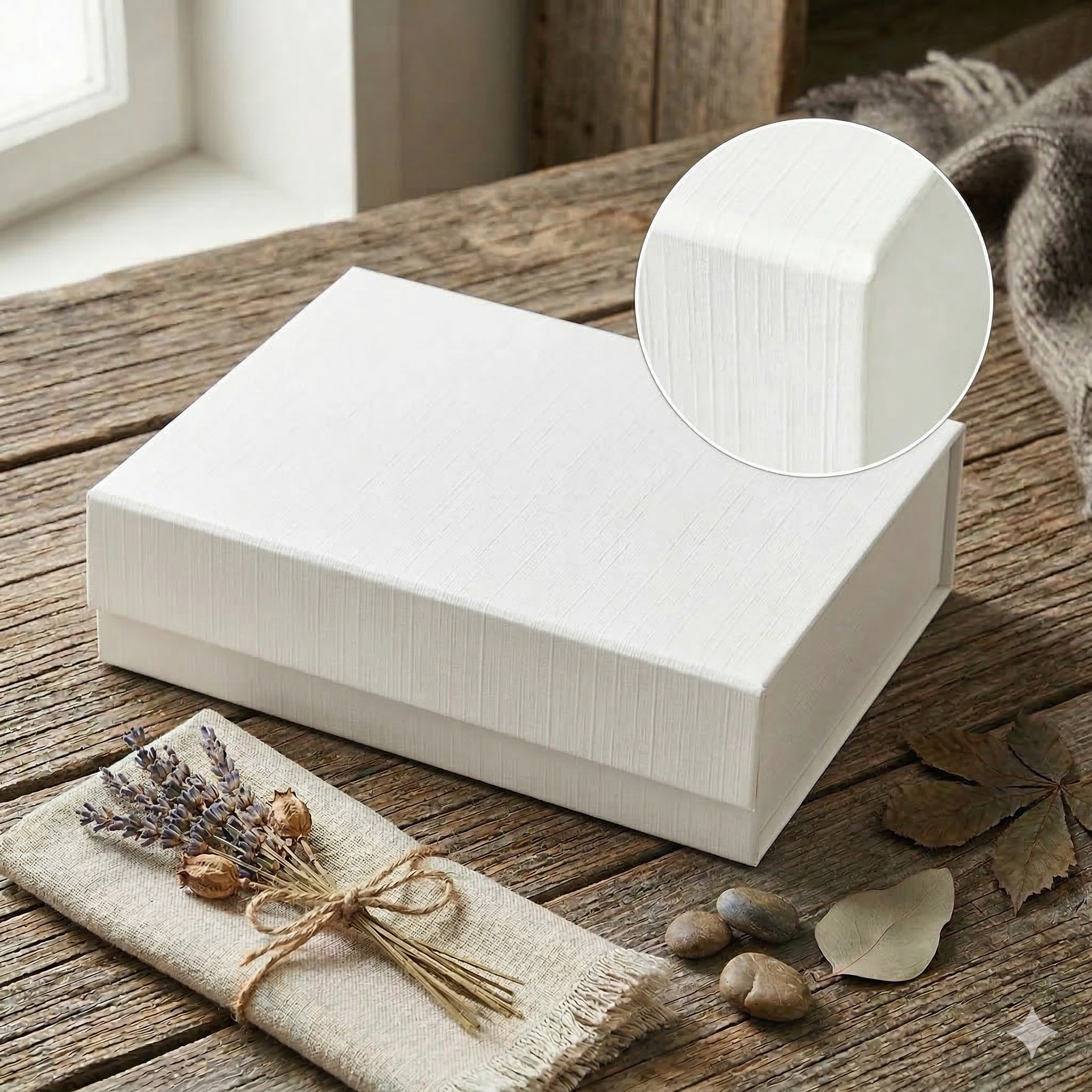 Eleganckie białe pudełko magnetyczne o strukturze lnu to stylowa kasetka przeznaczona do pakowania prezentów oraz przechowywania drobnych pamiątek. Subtelna faktura materiału nadaje opakowaniu wyjątkową estetykę i sprawia, że prezent prezentuje się elegancko jeszcze przed jego otwarciem.
